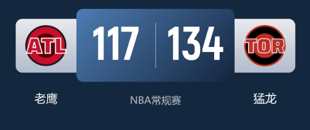 1月4日消息,NBA常规赛东部对决上演,东部第4的多伦多猛龙主场迎战东部第10的亚特兰大老鹰。老鹰三大核心缺阵实力受损,猛龙凭借末节窒息式攻势,最终134-117击败对手,巩固东部前四排名。