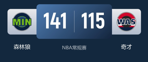 奇才(9-26,连胜终结):麦科勒姆20分3板2助(队内最高分)、特雷-约翰逊13分3板3助、基斯珀特13分1板(外线零星输出),多人得分上双但整体防守漏洞百出,篮板数落后对手21个。
