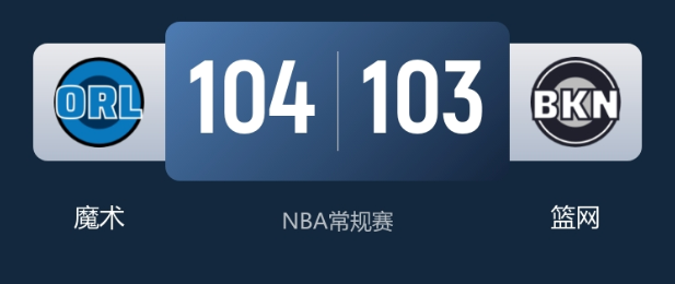 1月8日消息,NBA常规赛对决上演,萨格斯、小瓦格纳缺阵的残阵魔术客场挑战东部第13的篮网。双方鏖战加时,班凯罗终场前命中打板三分完成绝杀,魔术104-103险胜,篮网遭遇主场两连败。
