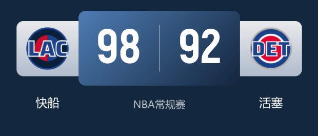 1月11日消息,NBA常规赛东部三连客收官战,快船客场挑战东部第一的活塞。活塞核心康宁汉姆和杜伦缺阵,快船在首节落后19分的绝境下完成逆转,最终98-92击败对手,延续近期好状态。
