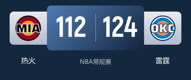 热火(20-19,客场落败):维金斯23分5板3助2断、希罗19分2板3助、拉松16分3板3助、阿德巴约6分14板4助,下半场防守崩盘,难以抵挡雷霆攻势。