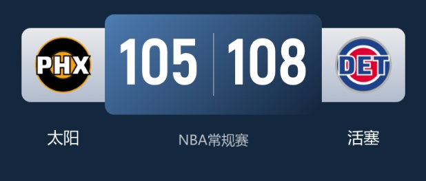1月16日消息,NBA常规赛焦点战,东部榜首活塞主场迎战西部第7的太阳,太阳布克缺阵,活塞核心坎宁安伤愈复出。活塞先落后后追,凭借末节关键攻势,最终108-105险胜,战绩来到29-10。