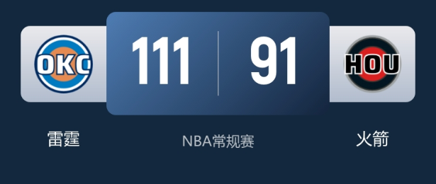 1月16日消息,NBA焦点对决上演,全联盟领跑的雷霆客场挑战西部第6的火箭,雷霆豪取5连胜,以111-91双杀对手,战绩来到35-7。