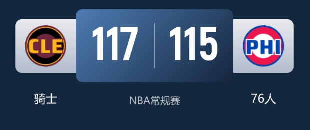 1月17日消息,NBA东部焦点对决,骑士客场挑战76人,骑士加兰、梅里尔和斯特鲁斯缺阵。骑士末节逆转,最终117-115险胜,完成本赛季对76人的横扫三杀。