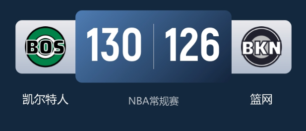 1月24日消息,NBA常规赛篮网主场迎战凯尔特人,怀特缺阵,绿军历经双加时鏖战,最终130-126险胜篮网,送对手4连败。
