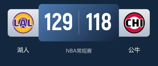 末节决战,湖人稳扎稳打维持场上优势,分差始终在10分上下浮动。公牛多次反扑未能抹平分差,湖人牢牢把控主动权,最终将胜利收入囊中。