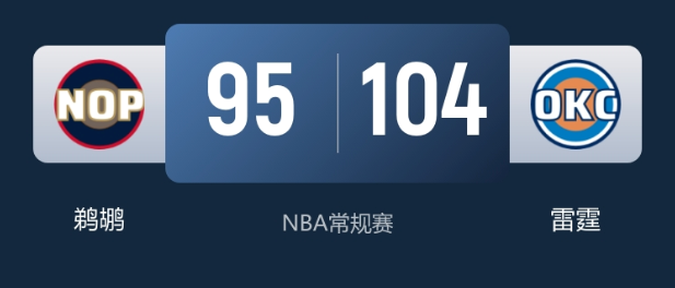 末节决战,鹈鹕虽发起猛烈追分势头,持续蚕食分差,但雷霆始终稳扎稳打守住领先优势,不给对手逆转机会,最终顺利拿下比赛,终结自身两连败。