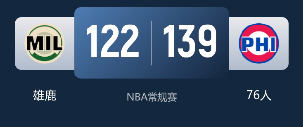 1月28日消息,NBA常规赛76人主场迎战雄鹿,字母哥缺阵,76人外线火力拉满,139-122击退雄鹿,终结2连败同时送对手3连败。