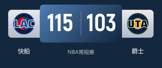 1月28日消息,NBA常规赛快船客场挑战爵士,快船末节稳守优势115-103击败爵士,豪取三连胜且近19战16胜,小卡达成连续25场20+的队史级成就。