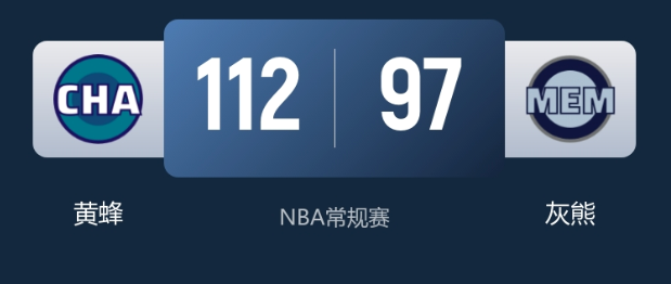 1月29日消息,NBA常规赛灰熊主场迎战黄蜂,黄蜂全程把控比赛节奏,客场力克灰熊收获4连胜,同时送对手继续连败。