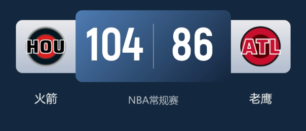 1月30日消息,NBA常规赛火箭背靠背客场挑战老鹰,多名球员缺阵的情况下,火箭下半场发力,最终104-86击败老鹰,终结对手4连胜,自身战绩来到29-17。