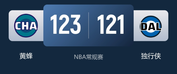 1月30日消息,NBA常规赛独行侠迎战黄蜂,浓眉等多人缺阵,新秀克尼佩尔与弗拉格全场对飚,黄蜂末节守住优势险胜,豪取五连胜,独行侠则延续连败。