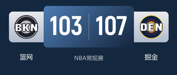 NBA常规赛战报:小波特38+10战旧主空砍掘金107-103送篮网7连败