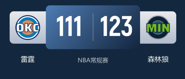NBA常规赛战报:森林狼轰22记三分力克雷霆爱德华兹26+5+5率胜
