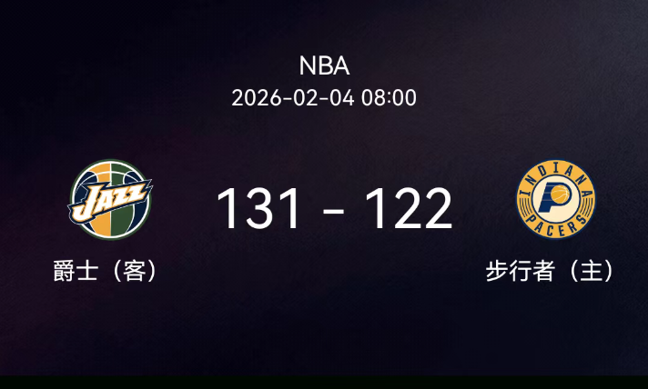 2月4日NBA常规赛步行者主场迎战爵士,双方全程对攻僵持,爵士下半场发力奠定胜局,最终客场力克步行者,战绩更新为16-35,步行者则跌至13-38。