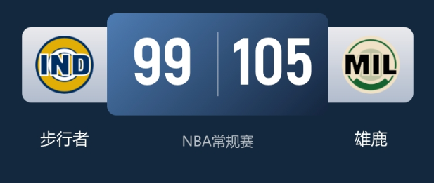 次节:步行者状态大幅回落雄鹿净胜13分反超7分进下半场