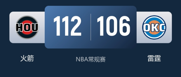 本场比赛最终比分,火箭112-106雷霆。