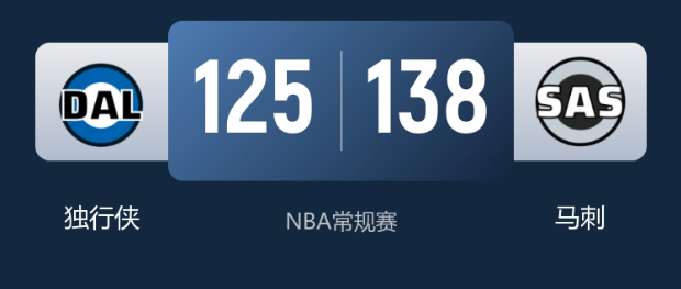 本场比赛最终比分,马刺138-125独行侠。