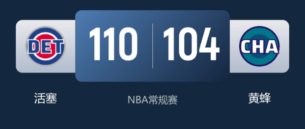 NBA常规赛战报:活塞力克黄蜂终结对手九连胜坎宁安贡献33分9篮板