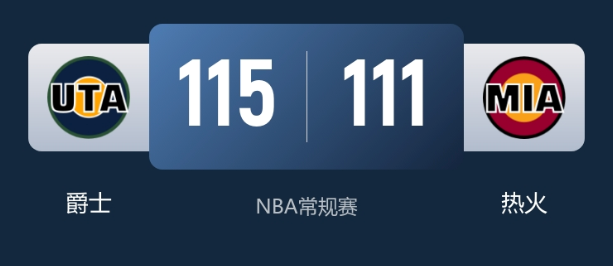 2月10日NBA常规赛热火迎战爵士,两队多名球员缺阵,爵士末节绝杀未果,最终险胜热火止住连败,爵士战绩更新为17-37,热火跌至28-27。