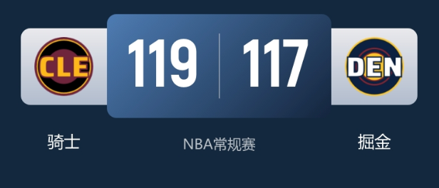 本场比赛最终比分,骑士119-117掘金。