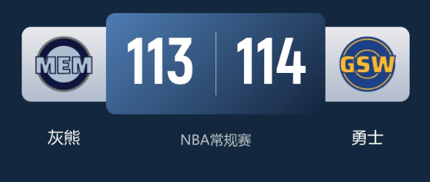 本场比赛最终比分,勇士114-113灰熊。