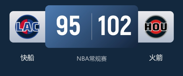 本场比赛最终比分,火箭102-95快船。