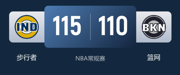 本场比赛最终比分,步行者 115-110 篮网。