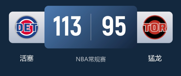 本场比赛最终比分,活塞113-95猛龙。