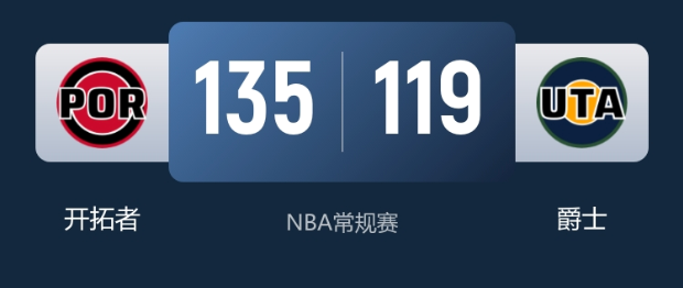 本场比赛最终比分,开拓者轻取爵士。